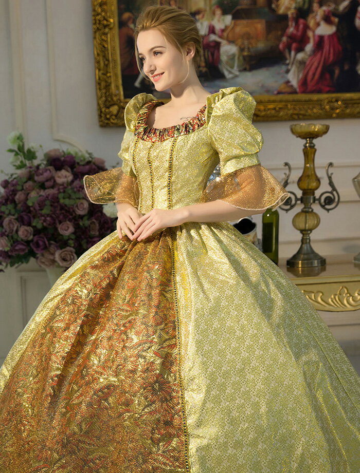 ドレス ロングドレス 貴族服 宮廷服 演出服 コスプレ衣装 欧米風 仮装 ワンピース ゴシック イギリス ヴィクトリア時代 イギリス ゴシック ドレスイギリス 豪華ドレス パーティー コスチューム ウエディングドレス 学園祭 文化祭 舞踏会 金 da047c0c0x1