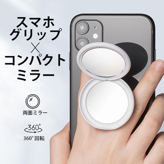 スマホグリップ ミラー付き 白 黒 ホワイト ブラック 360°対応 スマホスタンド グリップトック グリップホルダー grip tok スマホリング シンプル スタンド ホルダー 落下防止 携帯スタンド スマホ グリップ ミラー 詳しく見る