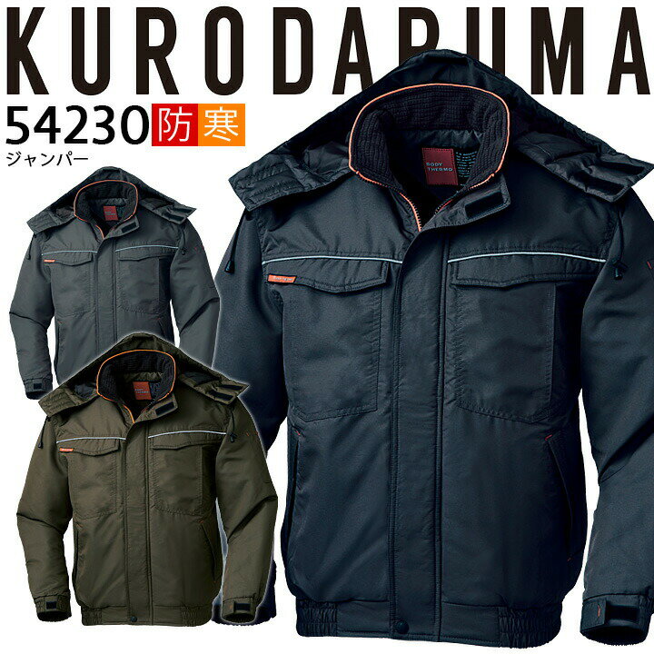 防寒着 防寒ジャンバー フード付き 撥水 反射素材 54230 クロダルマ ジャケット ブルゾン 秋冬 着脱式フード 衿ブロックフリース 軽量 保温 230シリーズ メンズ 防寒服 作業着 作業服